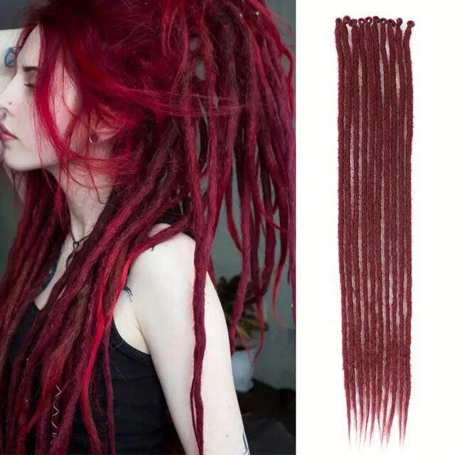 手作りの合成繊維ドレッドヘア,編みこみのヘアピース,10ストランド,24インチ