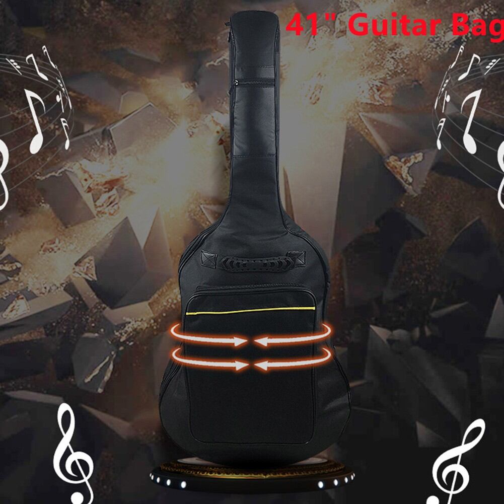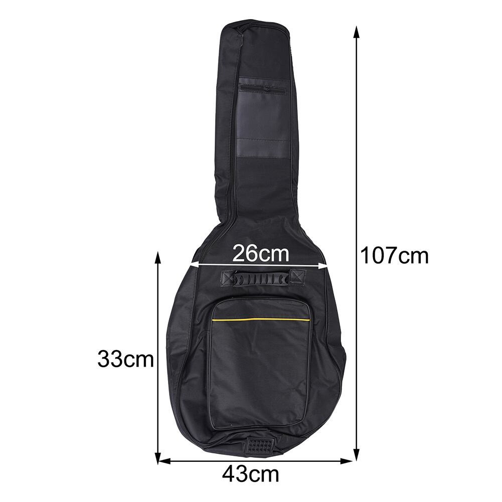 新品の高品質な防水オックスフォードナイロンアコースティックギターバッグが登場しました!最大41インチの標準サイズのアコースティックギターにぴったりフィットして、耐水性と耐摩耗性を兼ね備えています。ギターを整理整頓して、傷つかず安全に持ち運べます。外側はリップストップオックスフォードナイロンで、内側は厚いパッドと柔らかな裏地で保護されています。ギターやギアを衝突や衝撃から守り、安心して持ち運べます。どこへでも快適に携帯できるブラックのギターバッグです。機能:*真新しい高品質。