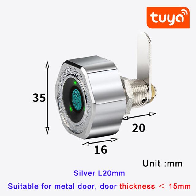 [Tuya-インテリジェントライフアプリケーションが搭載された電気ロック、指紋認証でセキュリティ面でも心配なし!キーレスな操作でキャビネットや引き出しのロックを簡単に解除できます。20個の指紋認証登録も可能で、便利さはさらにアップ!どんな場面でも便利なこの電気ロックをぜひお試しください!]仕様:材料:亜鉛合金Power:充電式リチウム電池アンロック:指紋/tuyaアプリ(Bluetooth)指紋認証の容量:20個充電ポート:ミニUSBポート作業温度:-20〜50℃作業湿度:10~80%rhアプリケーション:キャビネット、ワードローブ、ロッカーなど注意:1、このロックは時計回りにロック解除されます!2.tuyaアプリはロック解除のみ可能で、ロックは自動的にロックされます。