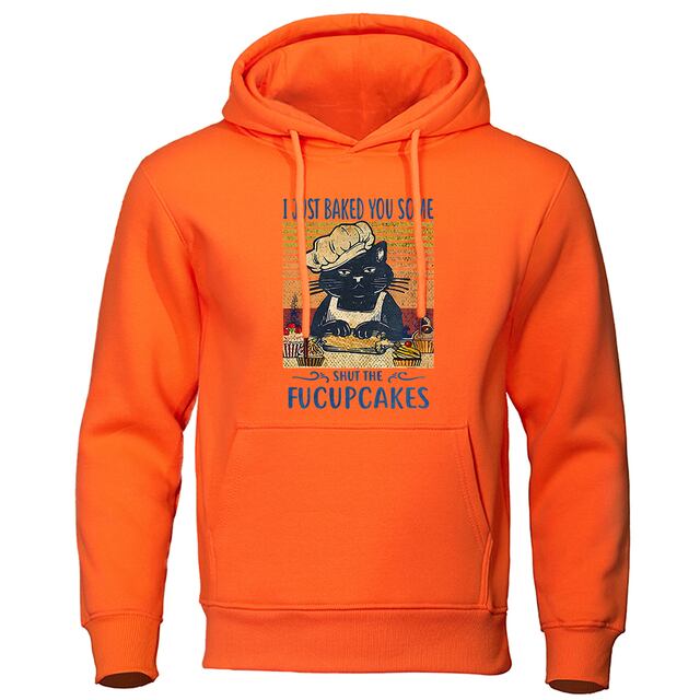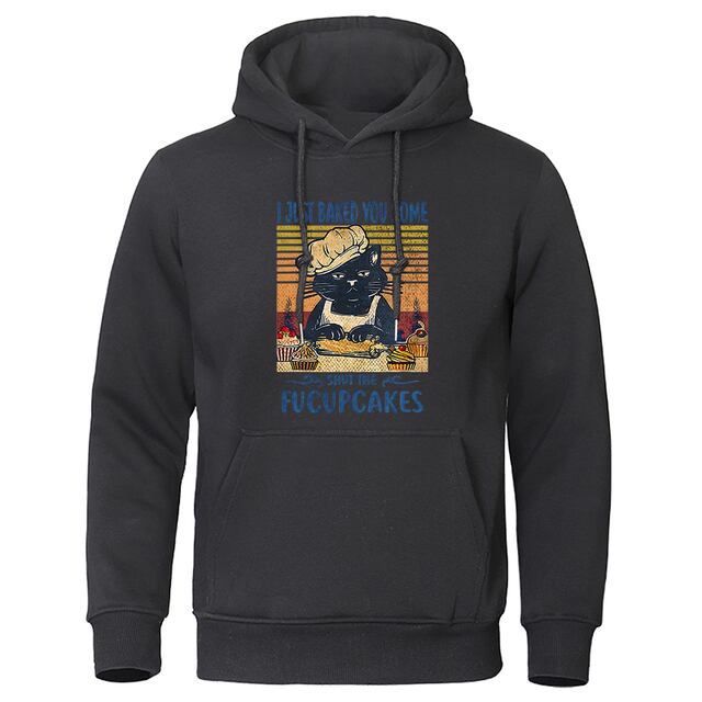 男性の大きなサイズの猫のプリントパーカー、私はあなたのケーキを焼きただけを作りました、秋のカジュアルなストリートウェア、高品質のファッション