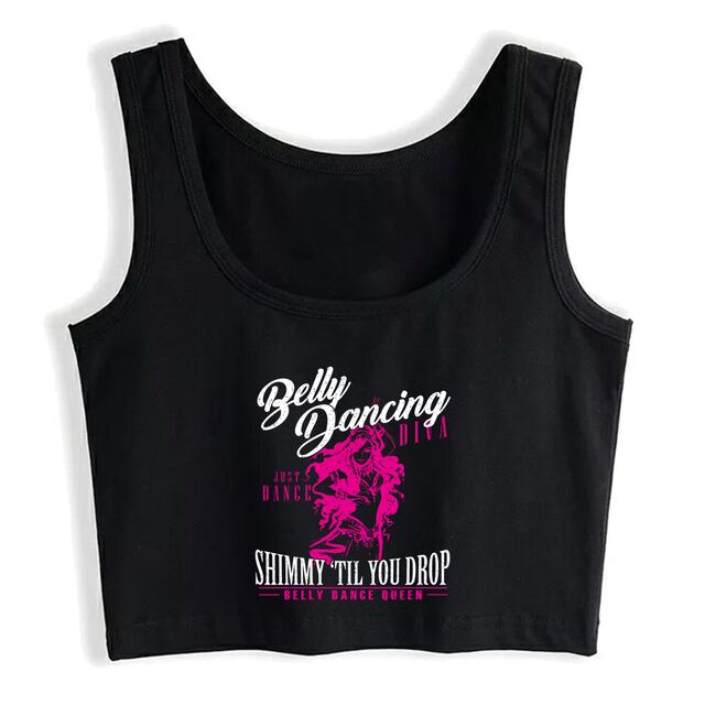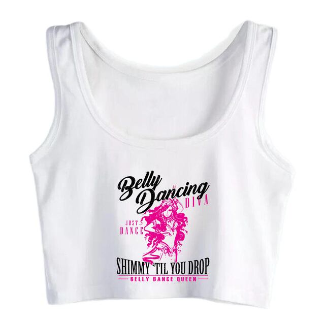 ダンスディヴァグラフィッククロップトップ、ベリーダンサーシャミーなデザイン、フィットネスタンクトップ、セクシークイーンキャミソール