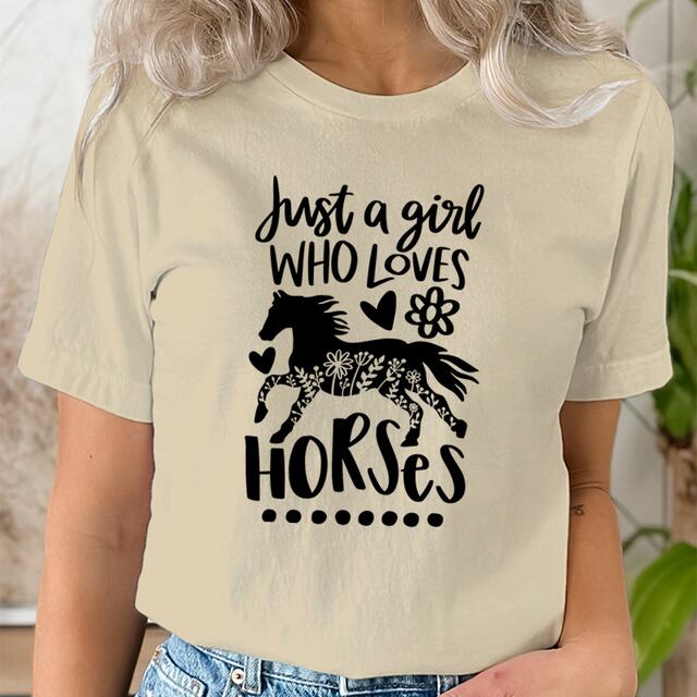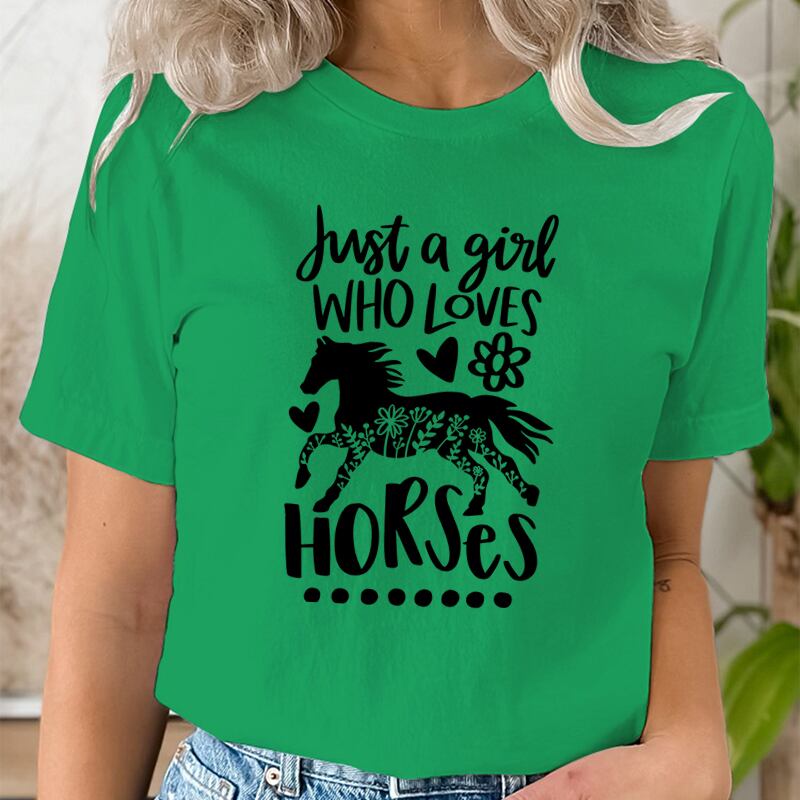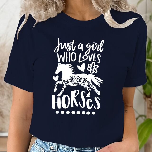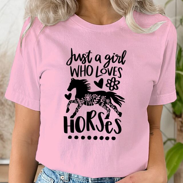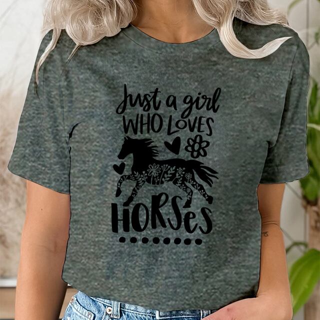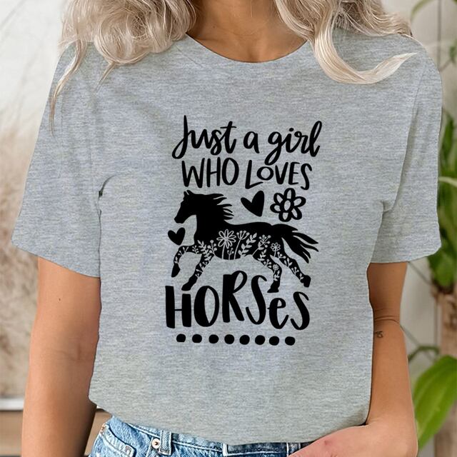 女性用半袖Tシャツ,馬の愛好家のプリントが施された原宿服,明るい,ファッショナブル