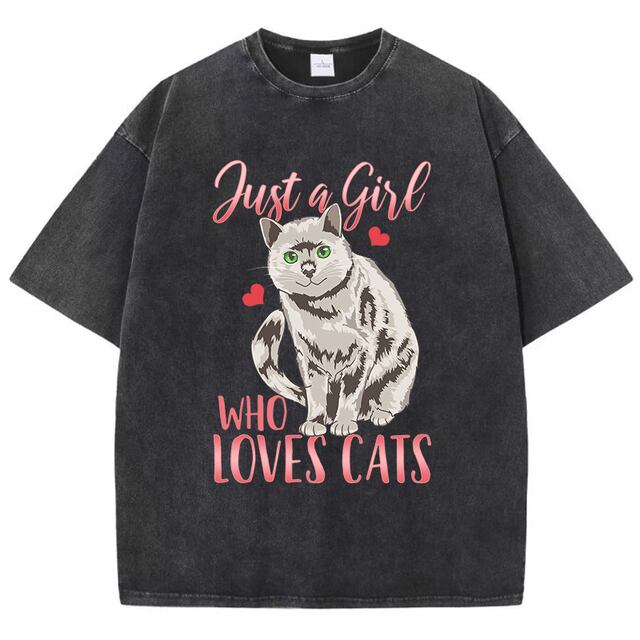 女性の色あせたTシャツ,猫のプリントが大好きな女の子のTシャツ,夏のファッション,通気性のあるTシャツ,柔らかくてかわいい服