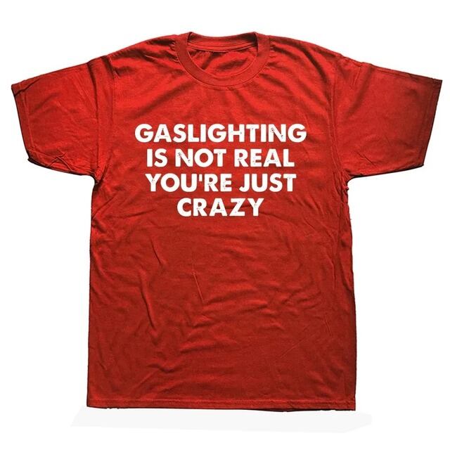 男性と女性のための特大のTシャツ,半袖,プリント,コットン,面白い,gasLightingは本物ではありません,クレイジー,夏