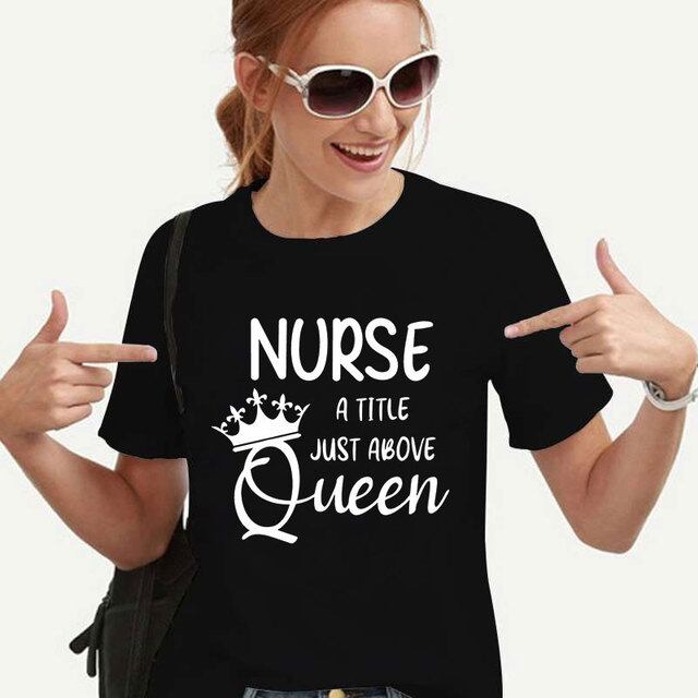 女性のためのユーモラスなナースTシャツ,美的服,半袖トップス,半袖Tシャツ,女王の手紙がプリントされたタイトル,y2k