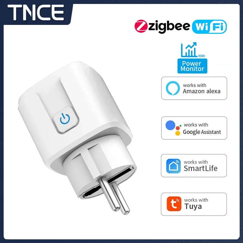 Artce tuya-スマートプラグ,wifi,zigbeeソケット,EU,16a,20a,電源モニター,タイミング機能,音声制御,Alexa, Go