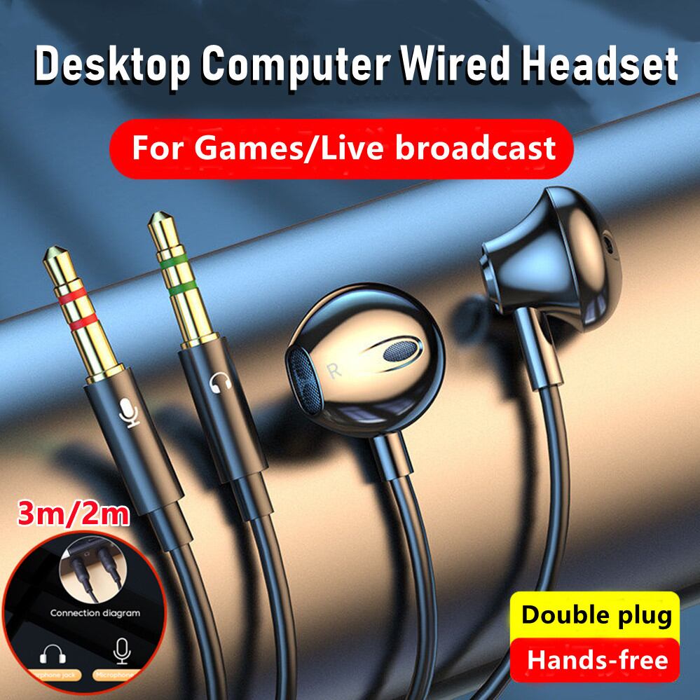 有線ヘッドホン,3.5mm,3m/2m,オーディオマイク,デスクトップ,コンピューター,PC用のデュアルプラグ付きイヤホン