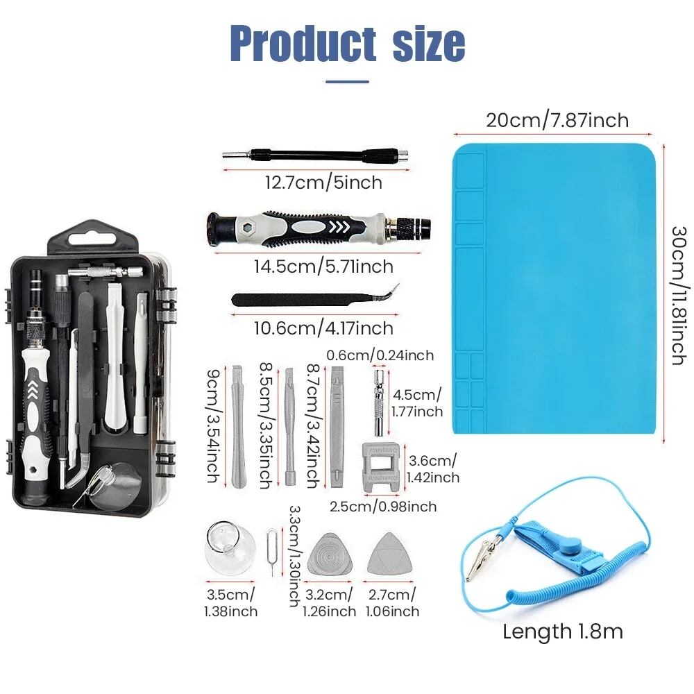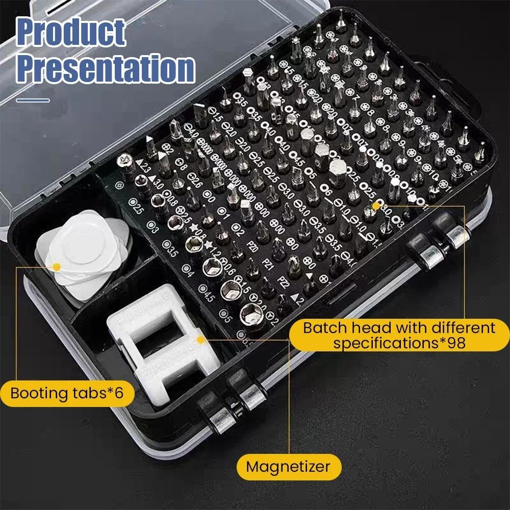 【プロフェッショナル必携!115種類のドライバーキット】様々な修理作業に対応可能!高品質のクロムバナジウム合金鋼製で耐久性抜群!ネジの紛失も心配いりません!修理作業がより正確に、そして簡単に行えます!様々な機器に対応し、柔軟で使いやすいアクセサリーも付属!コンパクトなサイズで持ち運びも便利!購入前に、手動測定による誤差やモニターの違いに関して安心してください。さあ、修理作業をスムーズに行いたい方におすすめです!機能:1.115-in-1ドライバーキットには、より多くのツールがあり、さまざまなタスクに必要なすべてのツールが付属しています。
