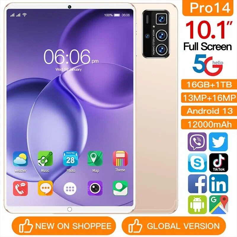 オリジナルの14タブレットPC,2022モデル,Android 13, 5gデュアルSIMカード,wifi,Google Play, GPS,ポータブ