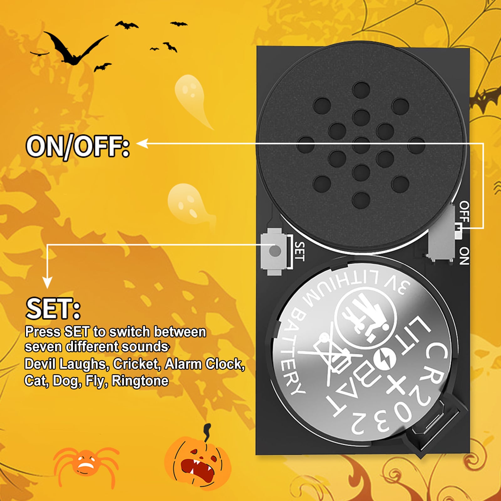 驚きと笑いが満載の「クリケット隠しノイズメーカーprank」が、7つの楽しい音であなたをお出迎え!ブザー、目覚まし時計、犬の吠え、猫のニャー、クリケットのさえずり、フライのブザー、そして悪魔のような笑い声など、様々なサウンドで驚かせます。