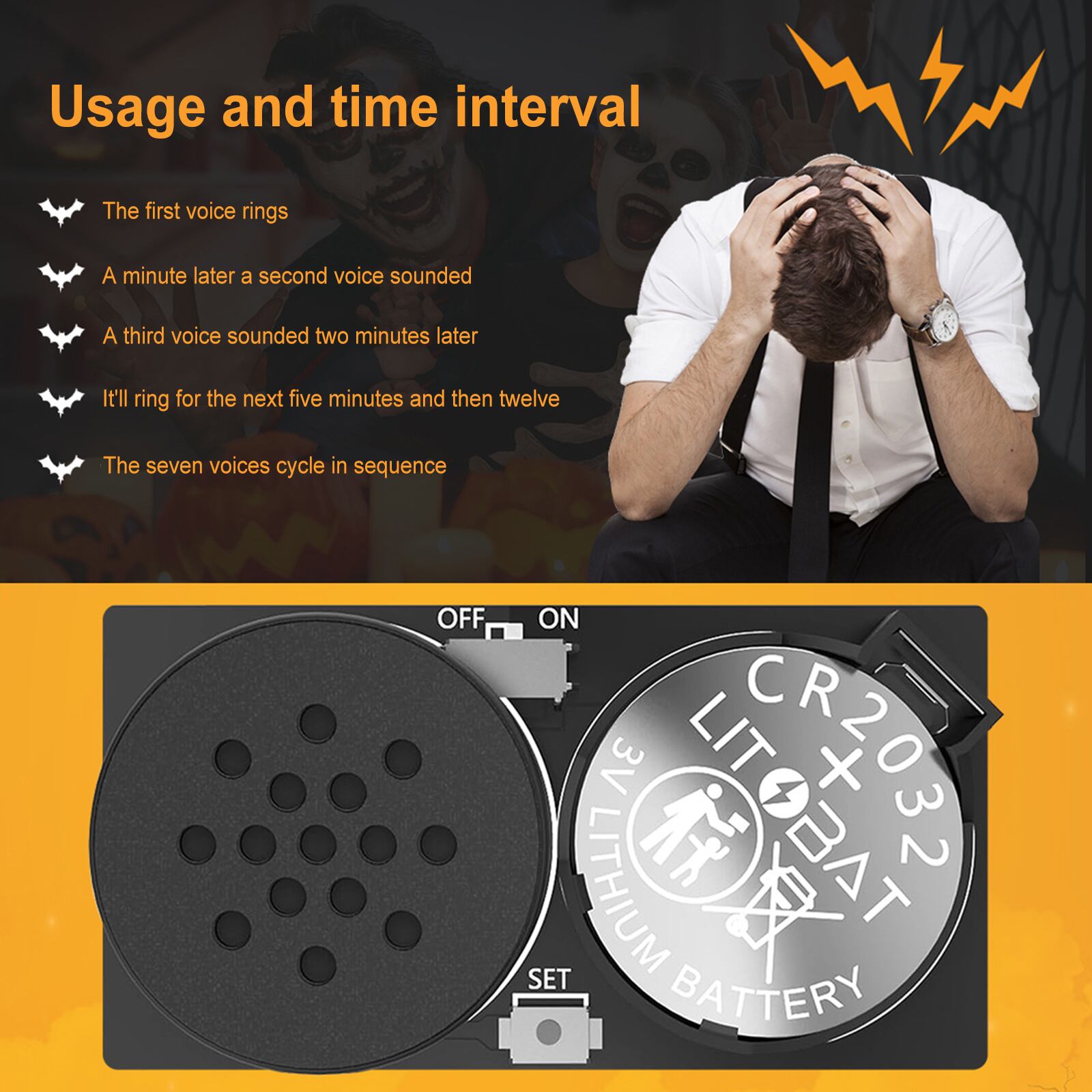 いたずら好きにはたまらない、「クリケット隠しノイズメーカーprank」を身につけて、楽しいひとときをお過ごしください!機能:1.この面倒なノイズメーカーは、ブザー、目覚まし時計、犬の吠え、猫のニャー、クリケットのさえずり、フライのブザー、悪魔のような笑い声など、7種類のサウンドオプションを備えたアップグレードバージョンです。