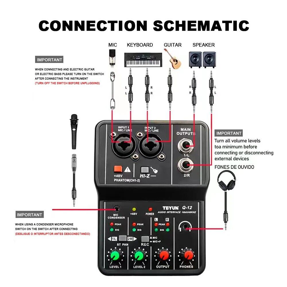 Teyun-プロフェッショナルポータブルオーディオインターフェイス,2チャンネル,サウンドカード,ミニUSBミキサー,ギター,レコーディング,歌用