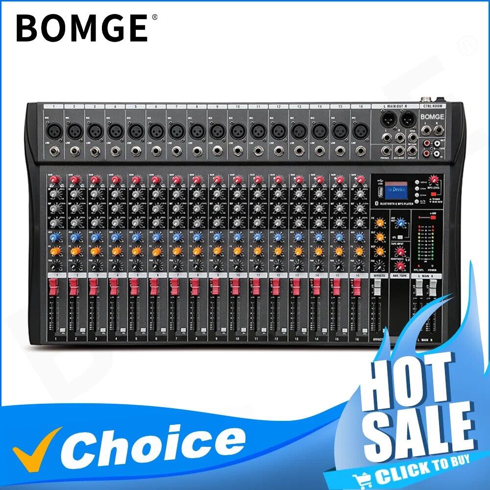Bomge-サウンドミキシングコンソールオーディオミキサー,Bluetooth, USB, PC,録音,xlr,マイク,ジャック,48v,電源,16チ