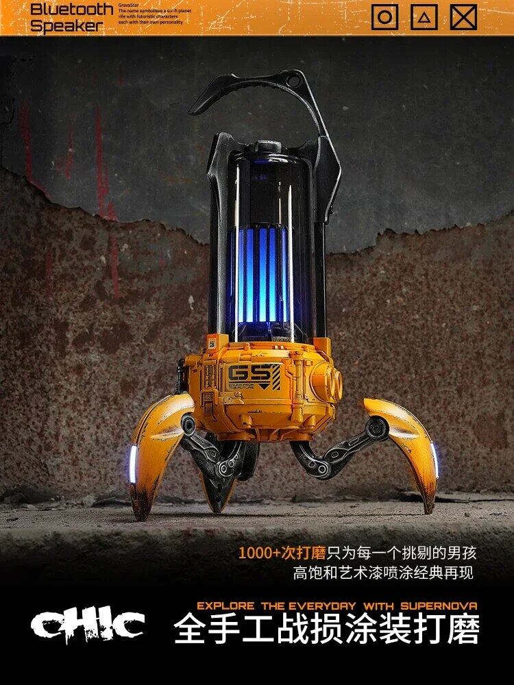 ブルートゥースGravastar-G5付きワイヤレススピーカー,黄色のオーディオアンプ,屋外パーティーのダメージを軽減するメカ,サブウーファー付き