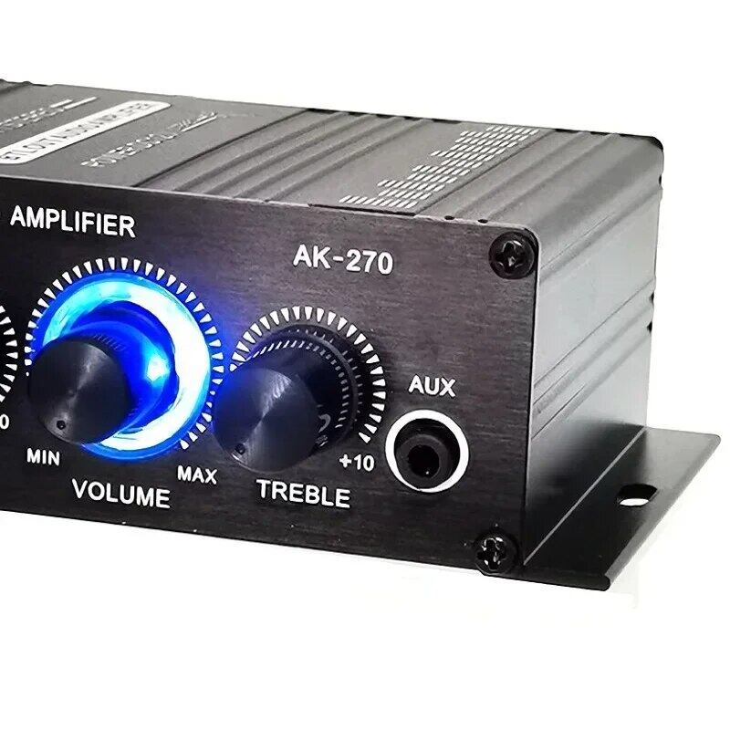 ホームシアターの醍醐味をより一層楽しめる、Ak-270 Hi-Fiステレオオーディオアンプが登場しました!アルミニウム合金ボディは厚みがあり手触りも抜群。ブルーのLEDライトが美しく輝き、高い音質でノイズのないサウンドを提供します。専用の電源アダプターでご使用いただけるので、車やトラックでも家庭用でも便利です。ホームシアターのスピーカーにピッタリなこのパワーアンプで、臨場感あふれるサウンドをお楽しみください!通知:-車(電圧12v)で使用する場合は、車のシガレットライターの電源を使用してください。