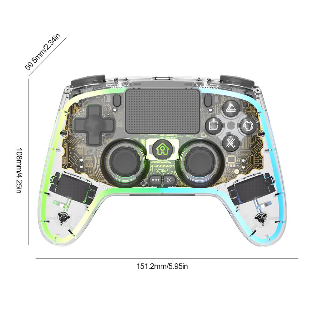 新しく登場したデュアルバイブレーション透明ワイヤレスコントローラーは、エレガントなデザインと先進技術を融合し、快適で没入型のゲーム体験をお届けします。最大10メートルのリーチを持ち、高度な柔軟性を実現するこのコントローラーは、新たなゲームの世界を引き立たせます。6軸モーションセンサーと内部デュアルモーター振動が、臨場感あふれるプレイをもたらし、2つの追加プログラム可能なバックボタンが、迅速かつ効率的なアクションを可能にします。完全な感覚フィードバックが、臨場感あふれるオーディオ体験とともに、まるでゲームの中にいるかのような感覚をご提供します。さらに、Ps4およびPC用のプログラミング機能と総合的な仕様を兼ね備え、競争上の優位性を与えることで、プレイヤーたちの期待を超えたゲームプレイを実現します。このワイヤレスBluetoothコントローラーは、快適さとスタイルを追求する方々におすすめです。デュアルバイブレーション透明ワイヤレスコントローラー,モーションセンサー付き6軸ワイヤレスコントローラー,PS4およびPC用のプログラミング機能機能:1.エレガントなデザイン:このワイヤレスゲームパッドは、エレガントなラインとミニマリストでありながら洗練された外観を備えた、人間工学に基づいた美しく細工された美学を誇ります。