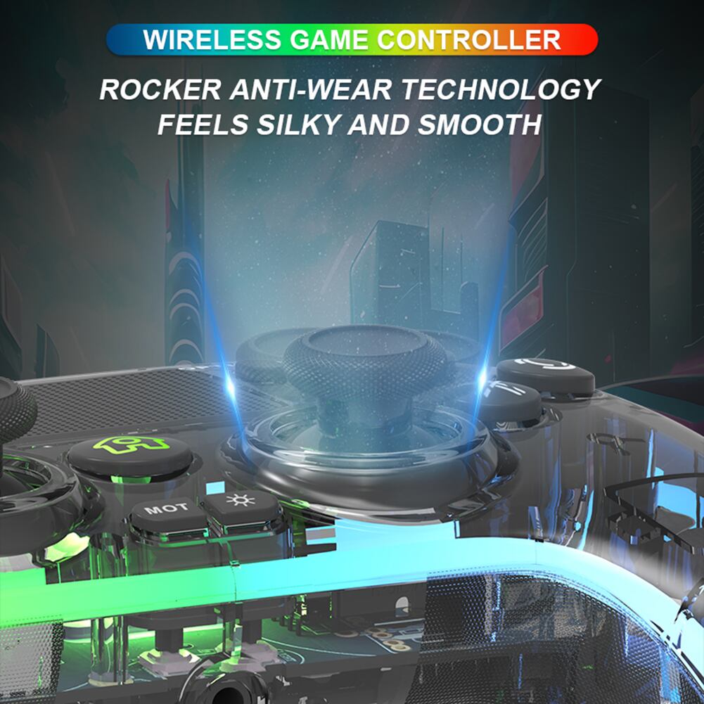 新しい次元でゲーミングを体験しませんか?エレガントなデザインと革新的な機能が融合した透明ワイヤレスコントローラーで、快適かつ没入型のゲーム体験を味わいましょう。高度なカスタマイズ機能や完璧な感覚フィードバックにより、競争力のあるゲームプレイを実現します。幅広い対応デバイスで使える柔軟性も魅力。新しいゲームの世界に没頭し、臨場感あふれるエンターテイメントを楽しんでください。デュアルバイブレーション透明ワイヤレスコントローラー,モーションセンサー付き6軸ワイヤレスコントローラー,PS4およびPC用のプログラミング機能機能:1.エレガントなデザイン:このワイヤレスゲームパッドは、エレガントなラインとミニマリストでありながら洗練された外観を備えた、人間工学に基づいた美しく細工された美学を誇ります。