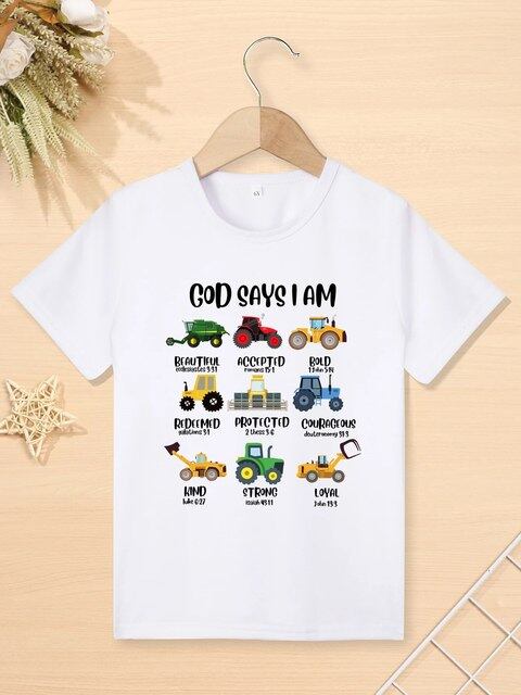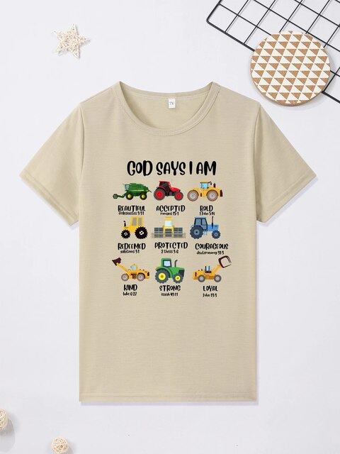 男の子のゴッドは私のプリントTシャツ、子供のラウンドネックTシャツ、カジュアルなソフトトップ、快適で通気性のある夏の服を言います