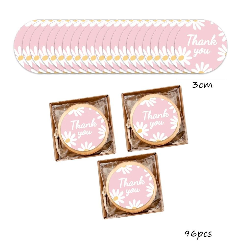 デイジーの花が付いたピンクの紙のステッカー,50個,誕生日,結婚式,パーティーの装飾用の吊り下げステッカー,DIYギフト包装用品
