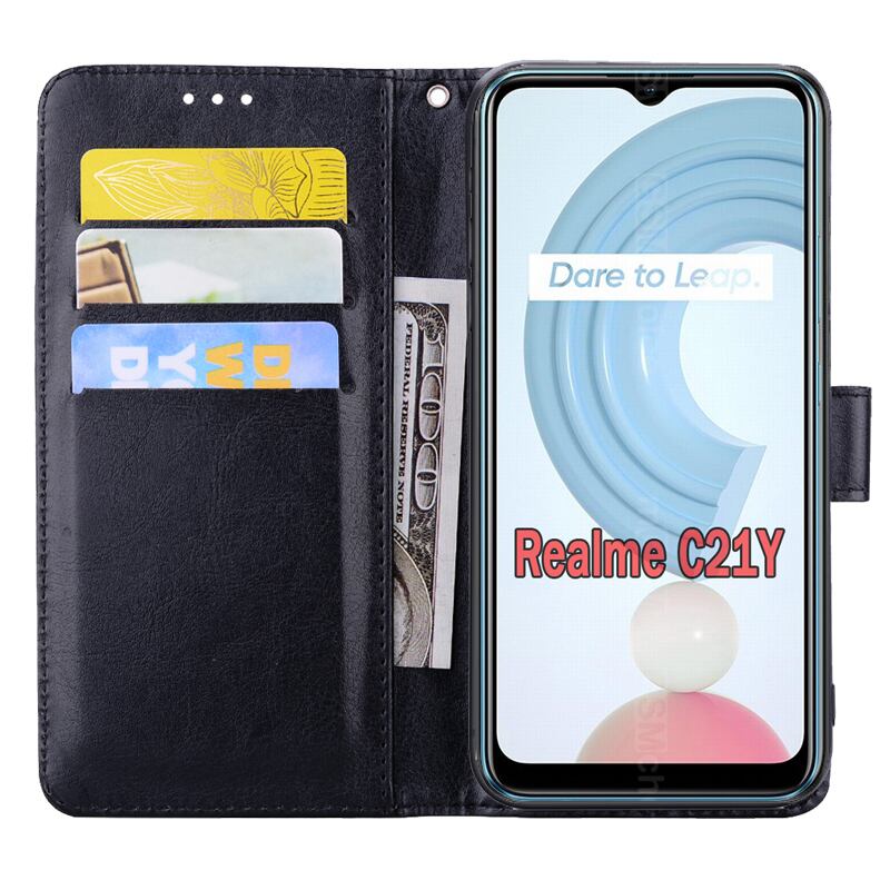 Realme C21yケース用レザーウォレットカバー,無料スタンド,realme c 21y c21 y rmx3261用磁気カードケース