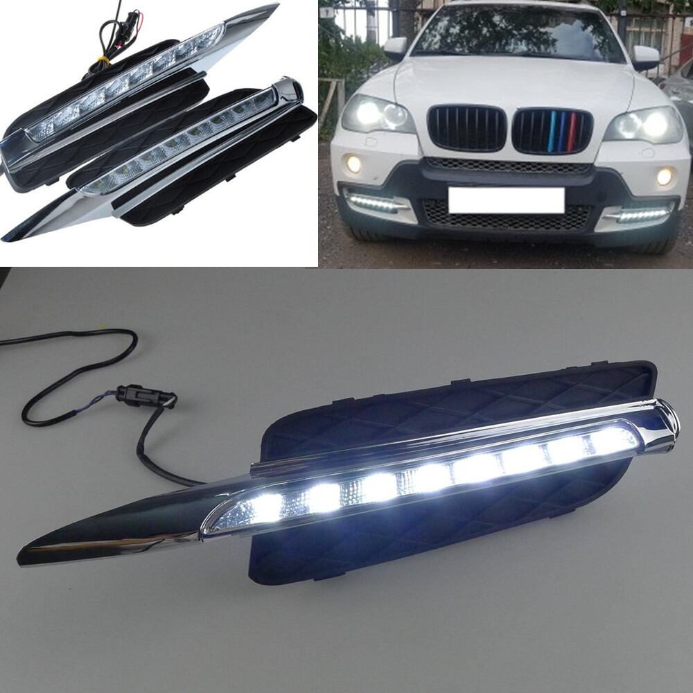 カー点滅2個drl bmw X5 E70 2007 2008 2009 2010日中走行用ライト車のledヘッドランプライトカバー