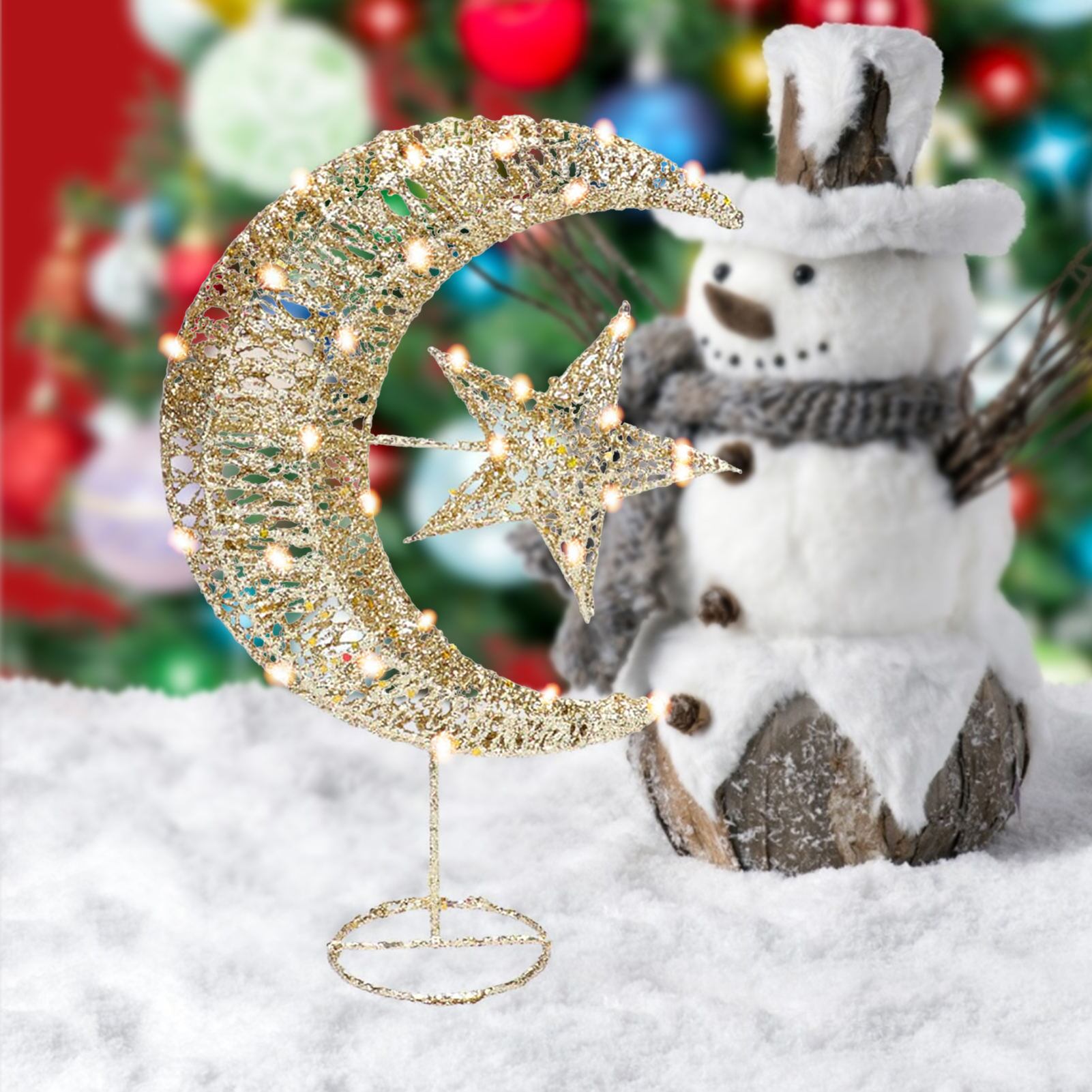 星と月のtreetop装飾,クリスマスツリートッパー,LEDライト,家の装飾,月の星のテーブルライト