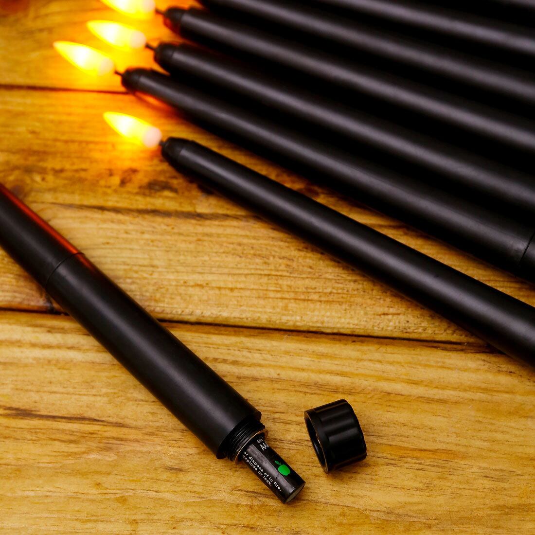 [光り輝く黄色と温かい白の煌めきが、まるで教会の神聖な雰囲気を演出しているかのよう。 この装飾的なキャンドルは直径2.1/0.85インチ、高さ28cm/11インチのサイズで、電池式なので場所を選ばず気軽に飾れます。黒い色合いが落ち着いた雰囲気を醸し出し、まさにハロウィーンにぴったり。バッテリーは別途2個のAAA電池が必要です。1パックには1個のキャンドルが含まれており、電池は付属していません。教会のキャンドルをイメージさせるこのアイテムで、ハロウィーンの雰囲気を盛り上げましょう。]Question:ライトカラーはどうですか?答え:黄色のちらつきと暖かい白のちらつきライトQuestion:サイズは?答え:直径は2.1/0.85インチ高さは28cm/11インチQuestion:バッテリーの種類は?回答:各キャンドルには2個のaaaバッテリーが必要です。