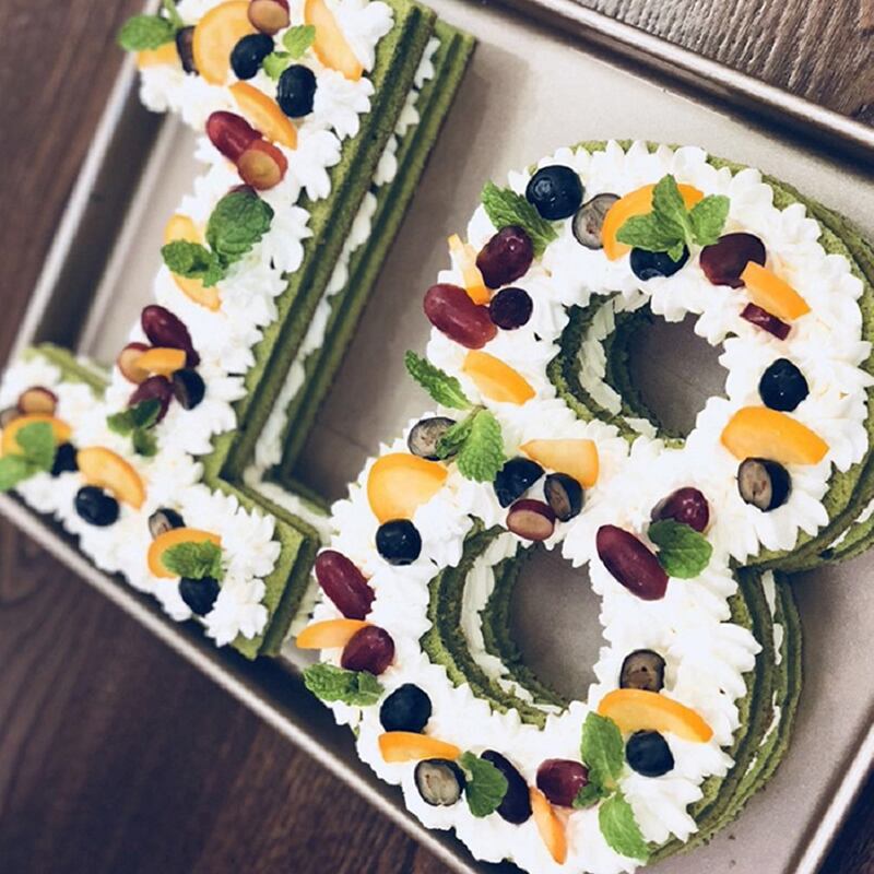 数字のケーキ型をケーキの上に置き、ナイフで型の端に沿って目的の形にカットするだけですクリームやフルーツの詰め物が入った多層ケーキ、年齢を明記したり、誕生日パーティーのメッセージを作ったりするのに最適です。
