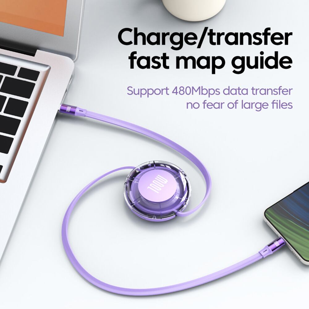 Olaf-格納式Cタイプケーブル,急速充電,iPhone 15, Xiaomi, Samsung,iPad,100W