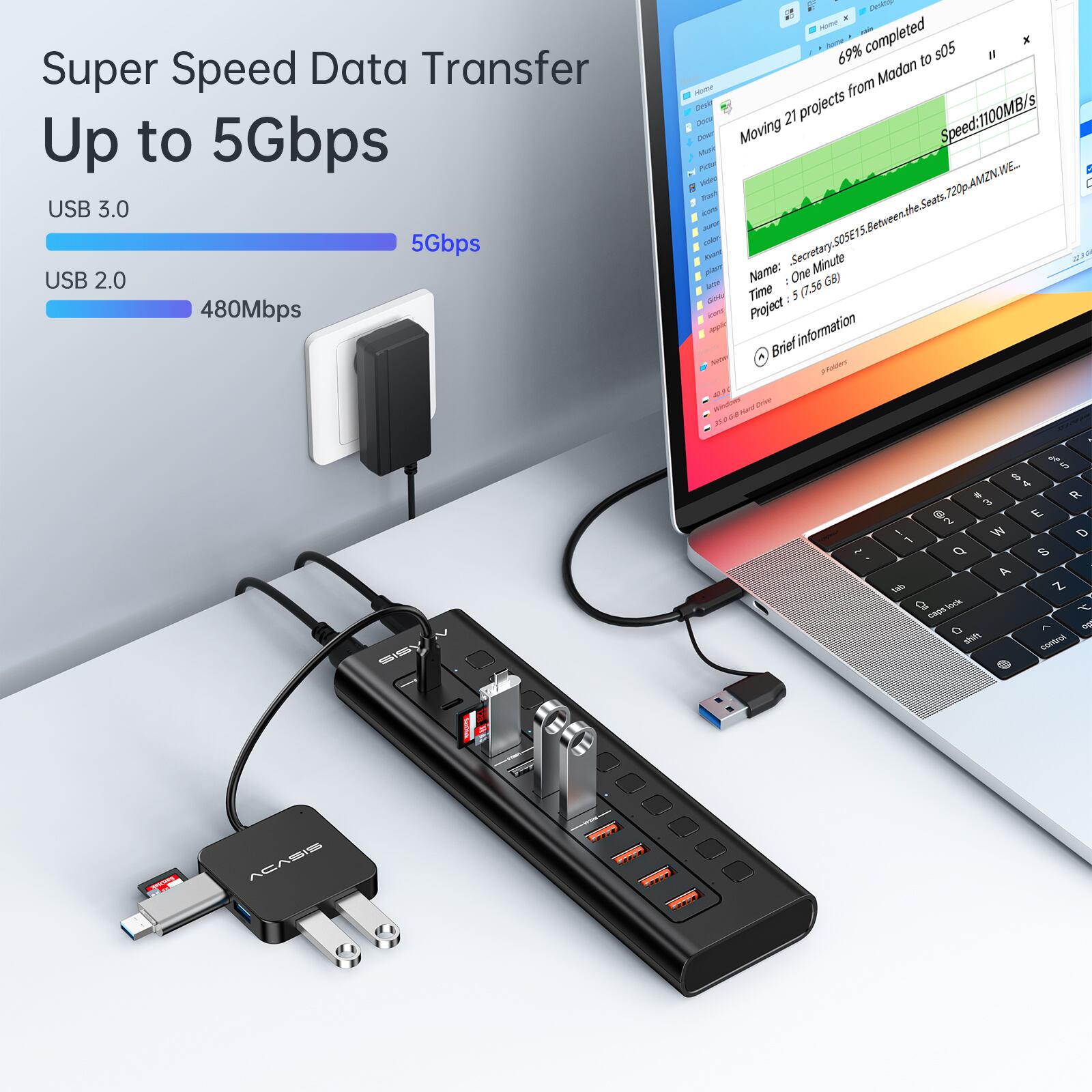 Acasis-type-cマルチアダプター,11ポート,ドックステーションUSB-C,急速充電,ラップトップ用の個別スイッチ,MacPro