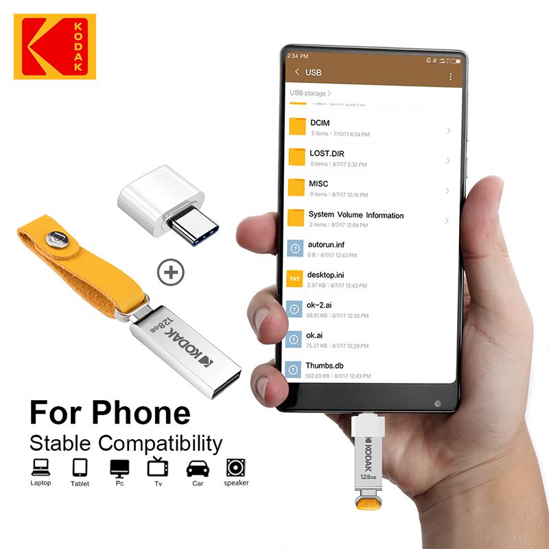 Kodak-USB 2.0フラッシュドライブ,32GB,64GB,128GB防水,革製固定庭用,金属uディスクタイプCリーダー