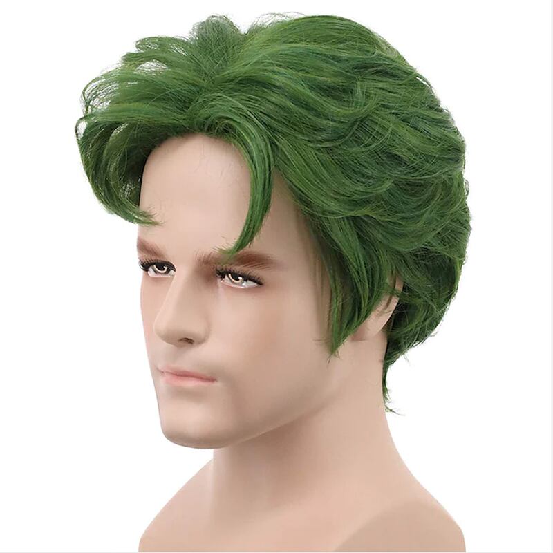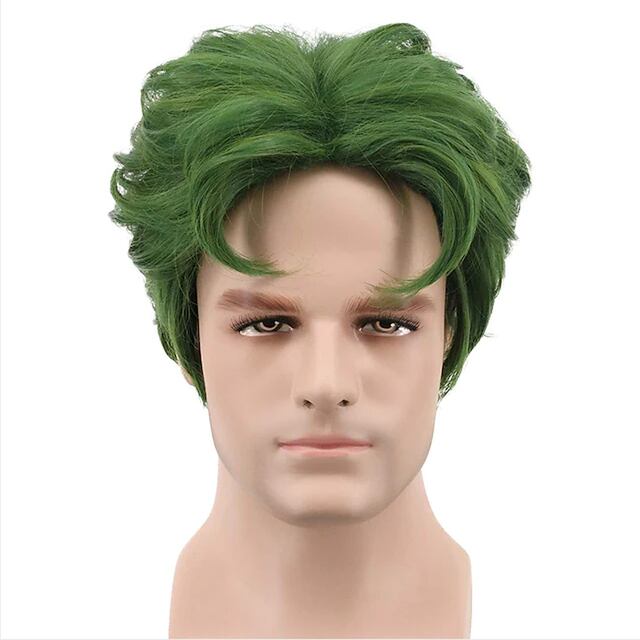 ヘアジョイ-男性用ショートグリーンカーリーコスプレウィッグ、合成ウィッグ、ハロウィーンパーティー