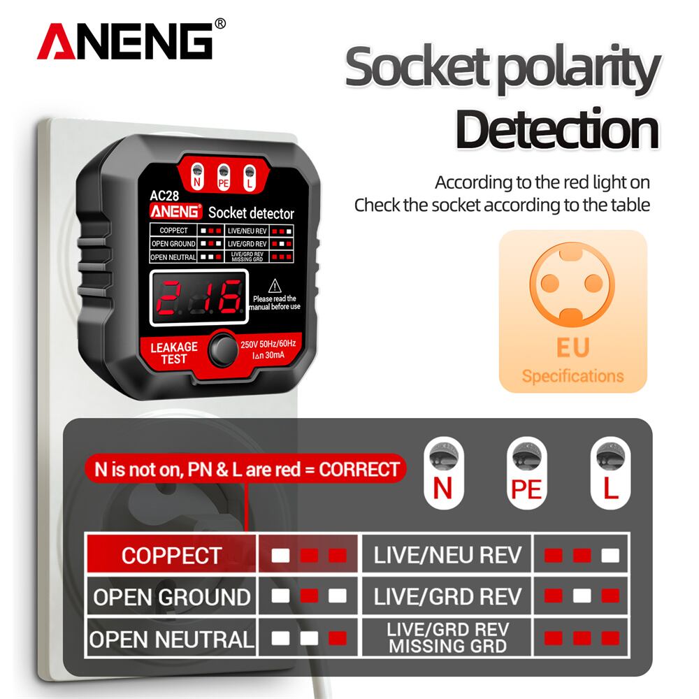 ANENGAC28-デジタルディスプレイ,電源ソケット/漏れスイッチをテストするための極性フェック検出器機能:1.迅速かつ正確なテスト:ソケットテスターは、ソケットの極性と漏れスイッチの安全性を迅速かつ正確にチェックするように設計されており、電圧テストにも使用できます。