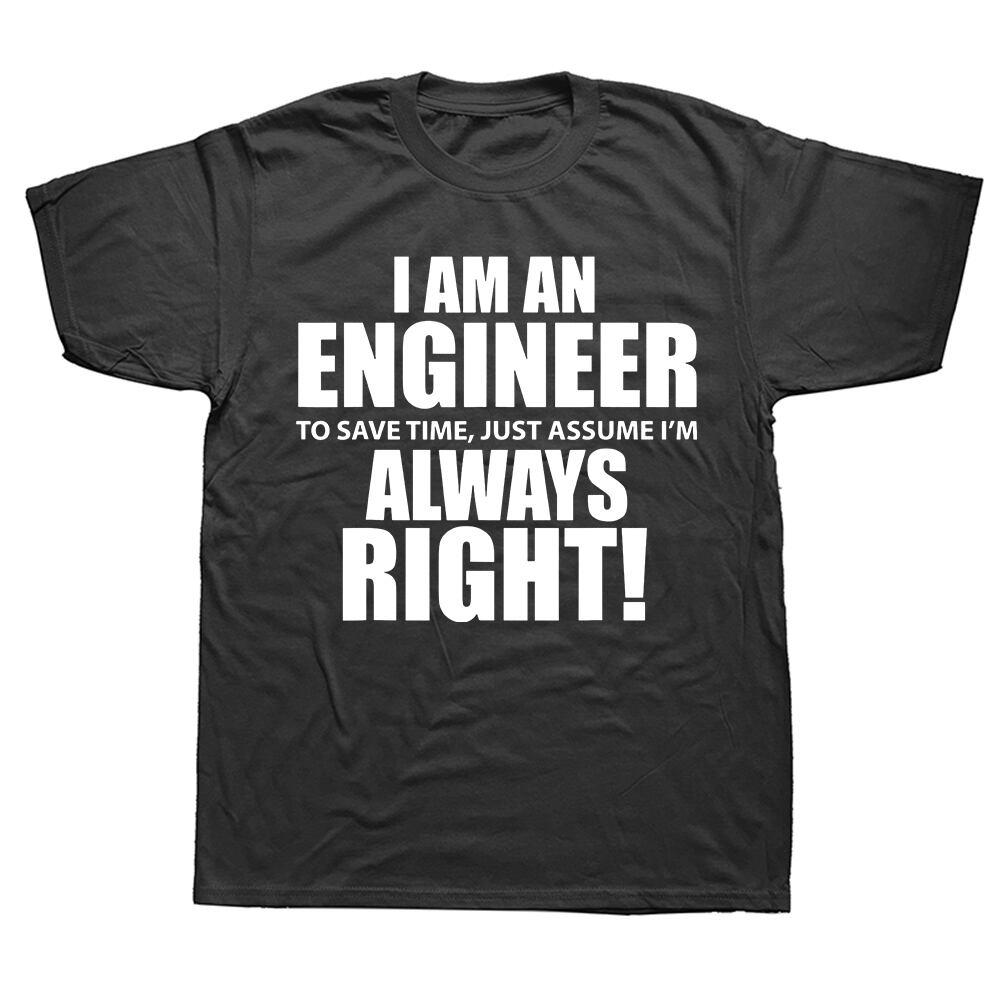 男性i am anエンジニアTシャツ、常に正しい面白いスローガン、カジュアルなストリートウェア、綿のトップス、夏のTシャツ、ファッション
