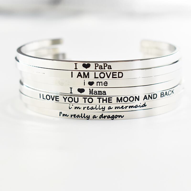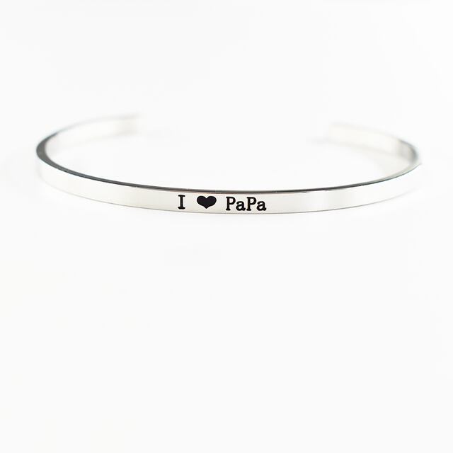 女性のための316lステンレス鋼の手錠、女性のインスピレーションを与えるジュエリー、i love papa am lored maid bangle、