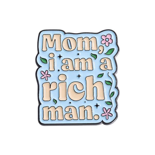ママのための面白いフレーズブローチ、私はリッチマン、エナメルピン、クリエイティブな幾何学的な金属ラペルバッジ、コートアクセサリー、ジュエリーギフト、卸