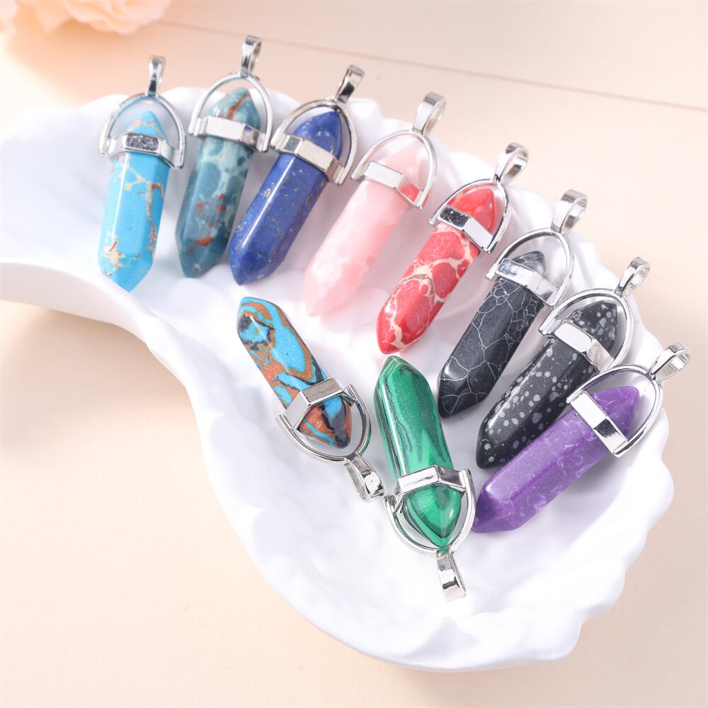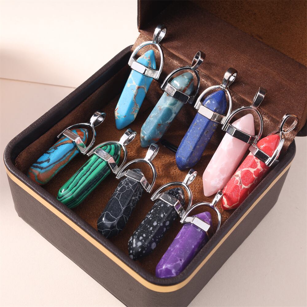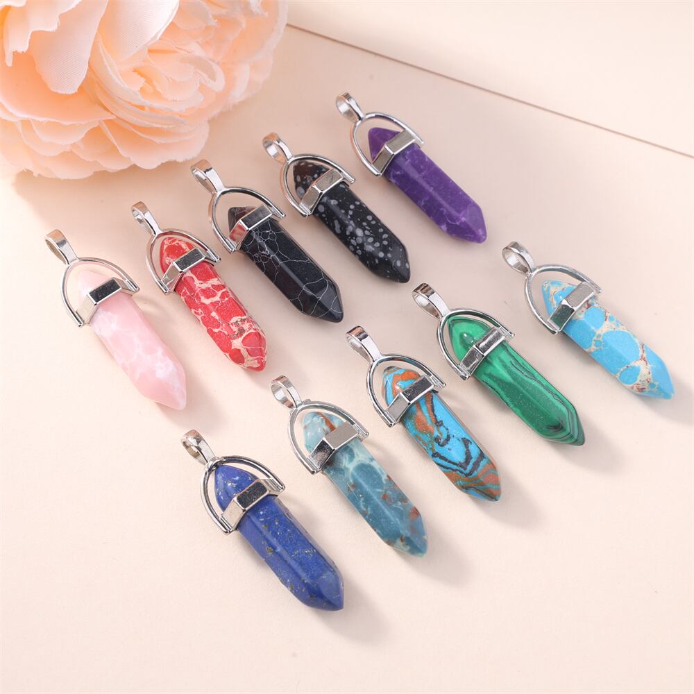 装飾的な弾丸のペンダントネックレス,金メッキの金属製ジュエリー,日曜大工の六角形の列,ヨーロッパとアメリカのジュエリー,天然宝石,5個