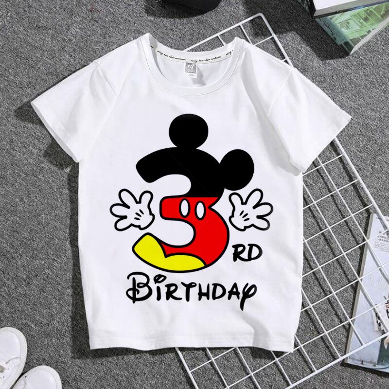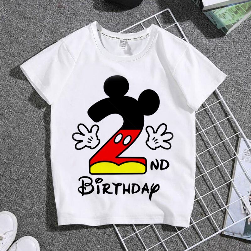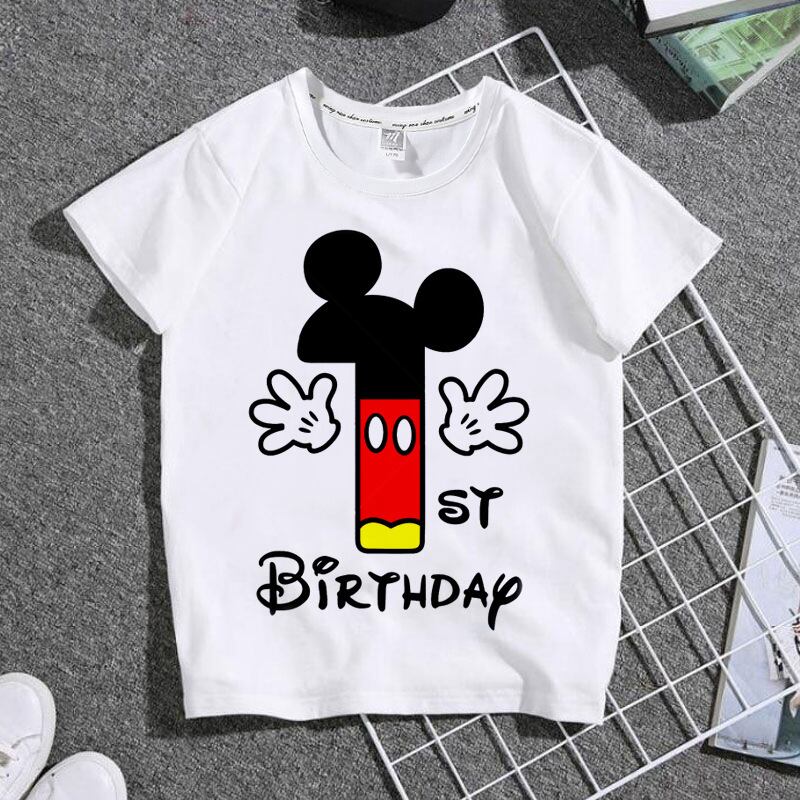 夏のファッションミッキーマウス、どうすればよいですか? 子供用半袖Tシャツ,男の子と女の子用の純綿トップス,子供用の誕生日服