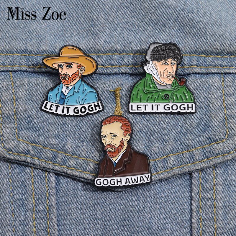 ヴァンゴッホ絵画エナメルピン、カスタム自画像ブローチ、ラペルバッジ、ゴッホお友だちへのジュエリーギフト、アーティスト