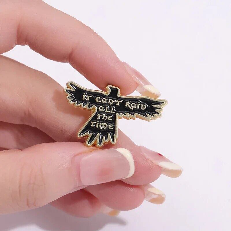 ブラッククロウバードブローチ、エナメルピンアニマル、いつでも雨ない、パンクジュエリー、バッジラペル、バックパックアクセサリー、ハロウィーン