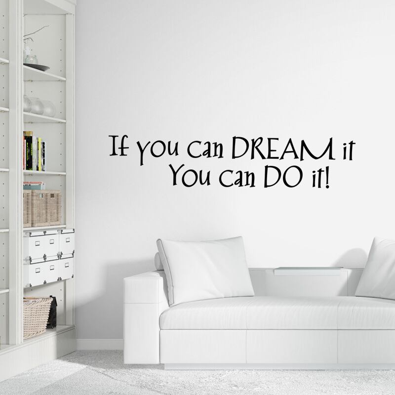 夢を見ることができるなら。あなたはそれを行うことができますウォールステッカー家の装飾のためのリビングルーム壁画英語インスピレーションステッカー壁紙