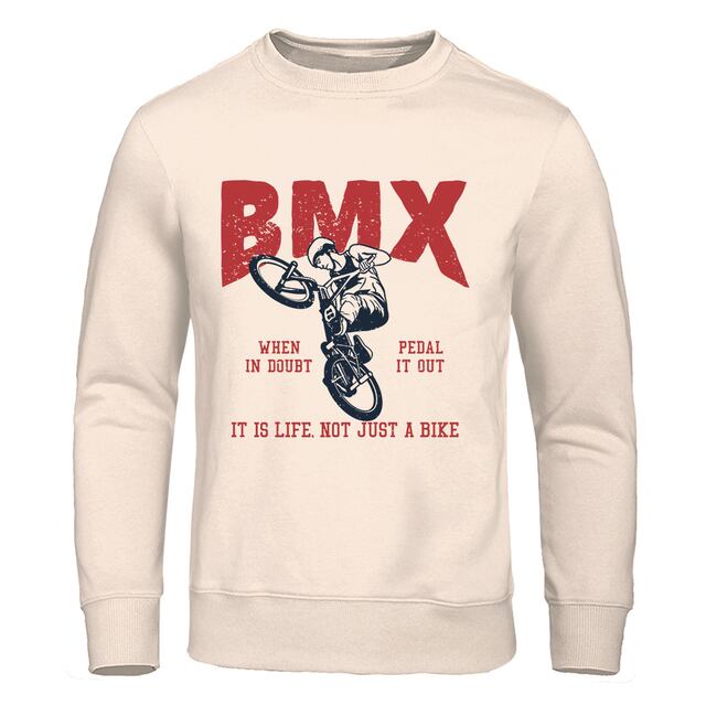 - 秋の夜を温かく彩る、メンズBMXビープリントフード付きスウェットシャツが登場!ラージサイズからXLサイズまでご用意しており、男性にぴったりのサイズ感です。