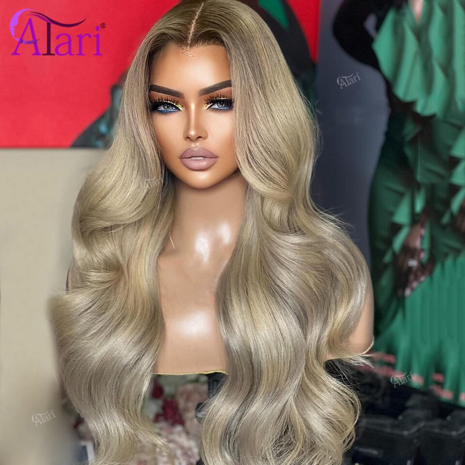 レースフロント人毛ウィッグ、ハイライト付き、ボディウェーブウィッグ、事前に抜いた、グレー、27ブロンド、13x4 13x6、5 x5レースクロージャー