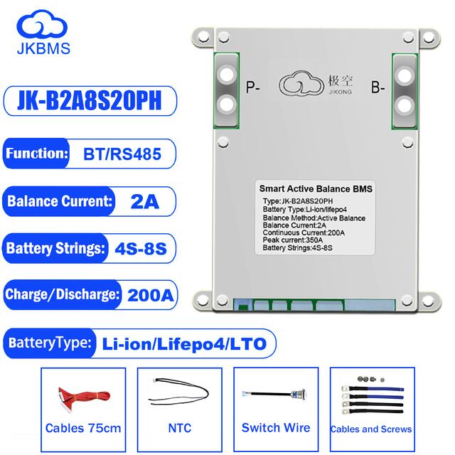 Jk-インテリジェントBmsアクティブバランスバッテリー,LiFePo4バッテリー,48v,60v,bt,リチウムイオン18650,キャンプ用,電動自