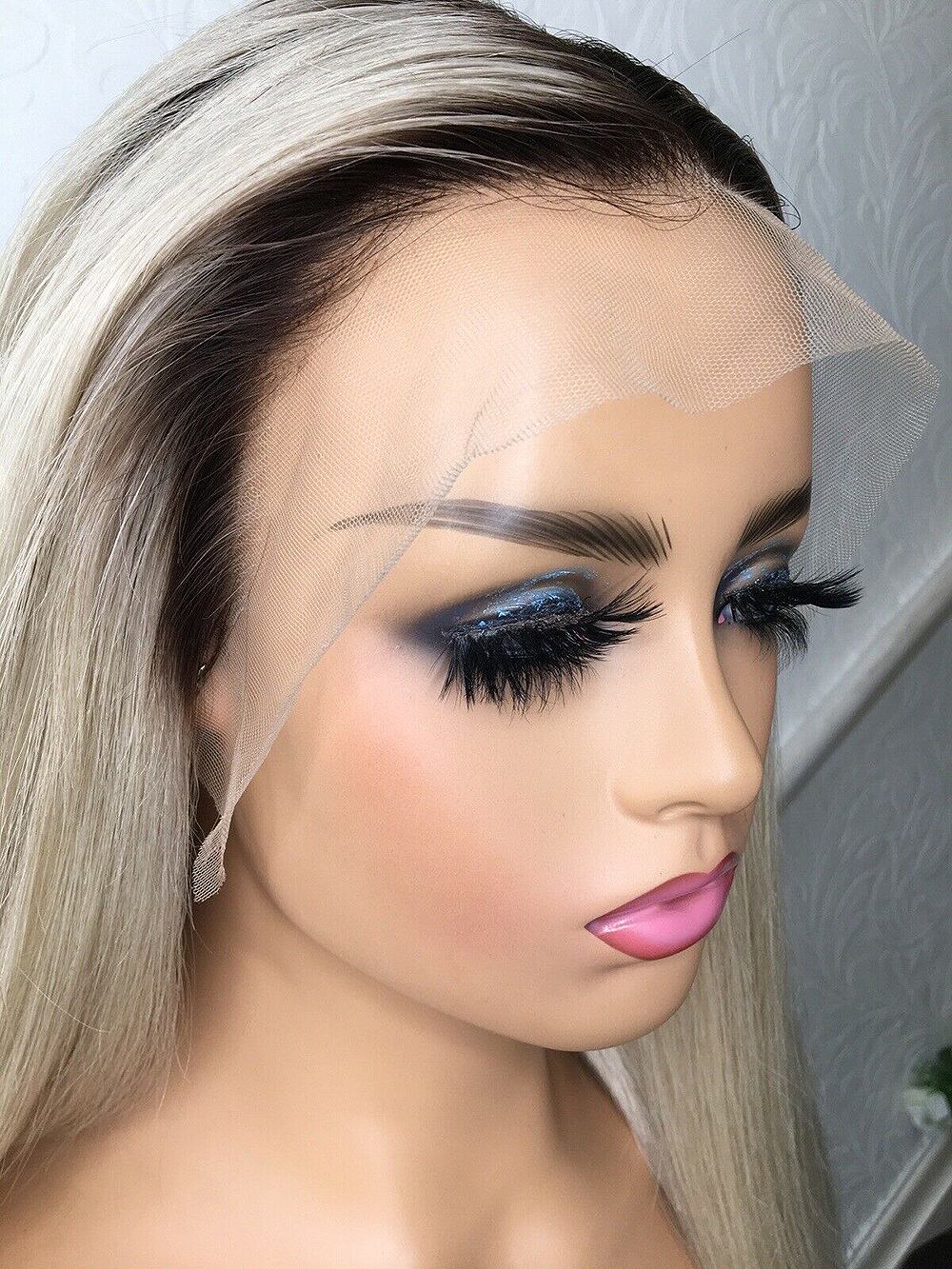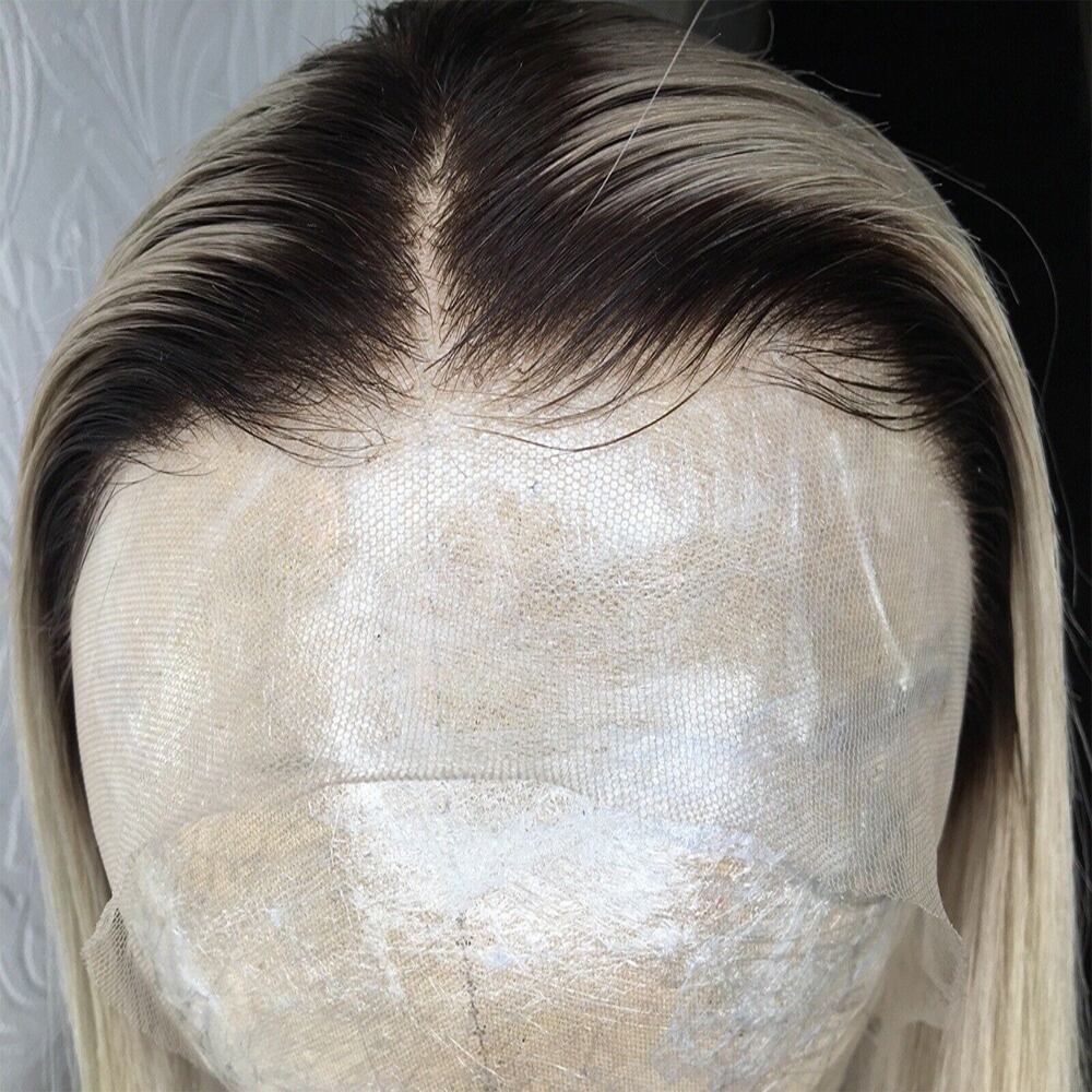 プレプラットのストレートレースフロントウィッグ、ブラジアンヘア、プラチナブロンド、13x6、360正面ウィッグ、プレプル