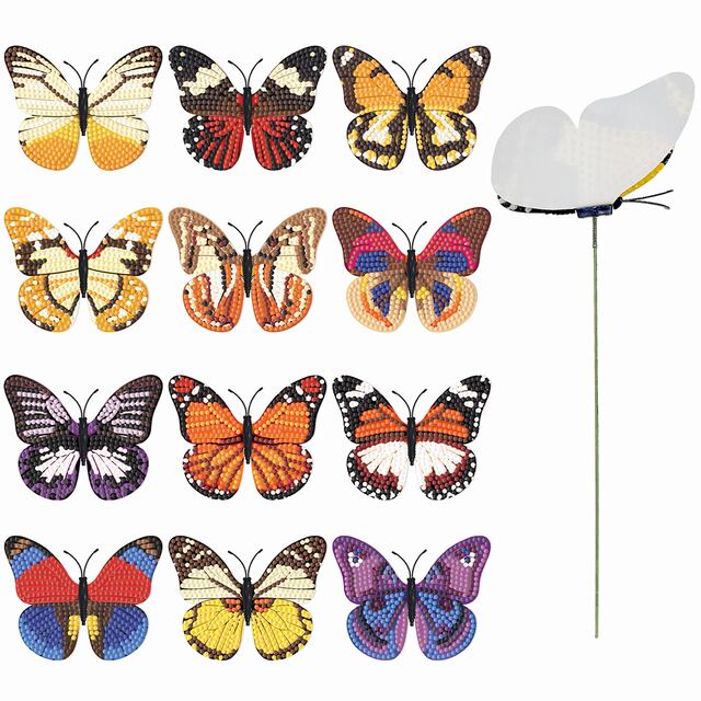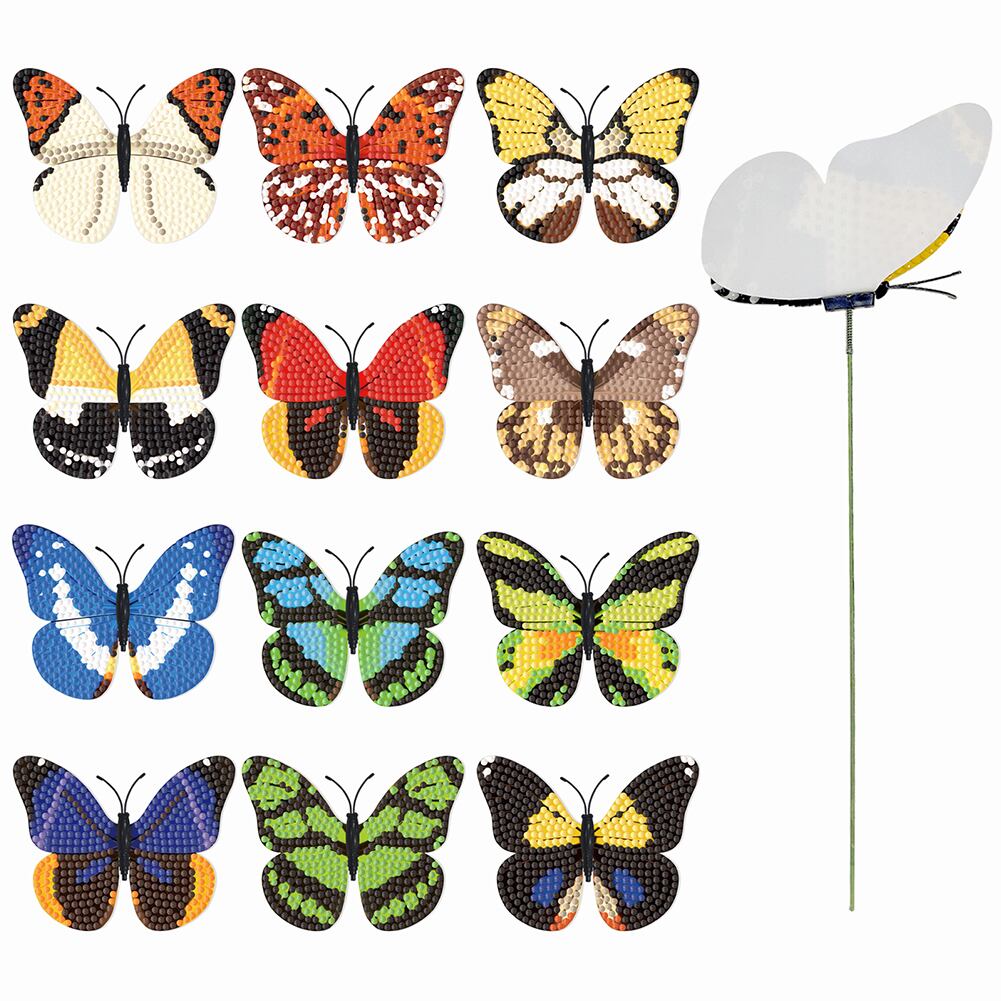 ダイヤモンド絵画植物装飾スティック、ガーデニング、花のサポート、庭の盆栽、太陽の花、蝶、9個セット