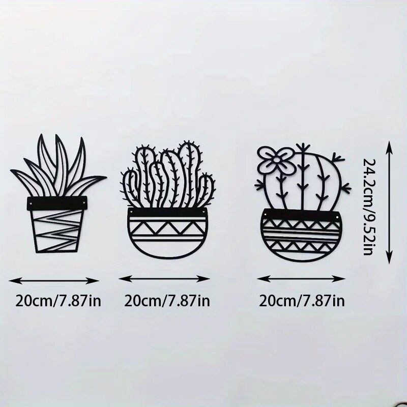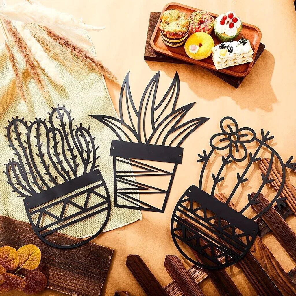 サボテン金属製の壁の芸術,自然な装飾,モダンな金属の壁の芸術,黒の鉄の芸術,3個