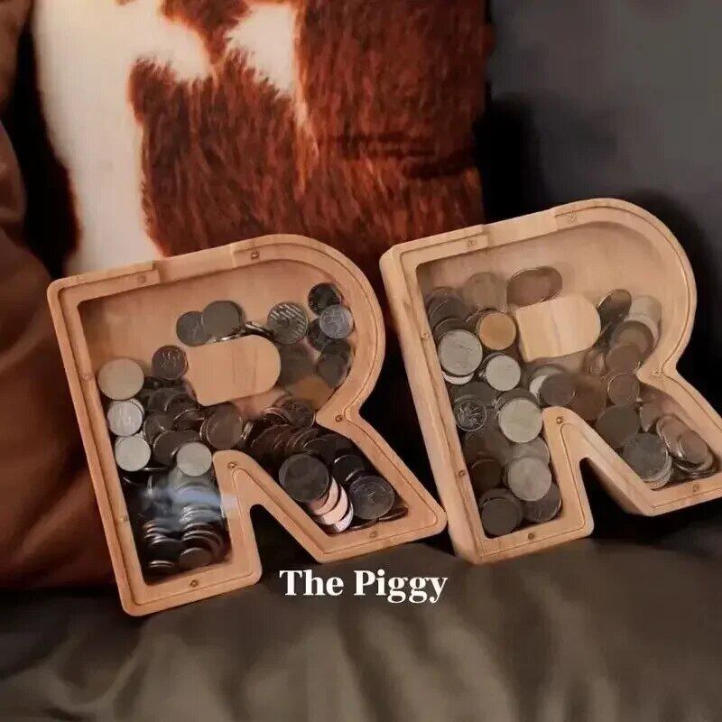 26文字の形をした木製の貯金箱,パーソナライズされた登録,コインの家の装飾,創造的な工芸品,子供へのギフト