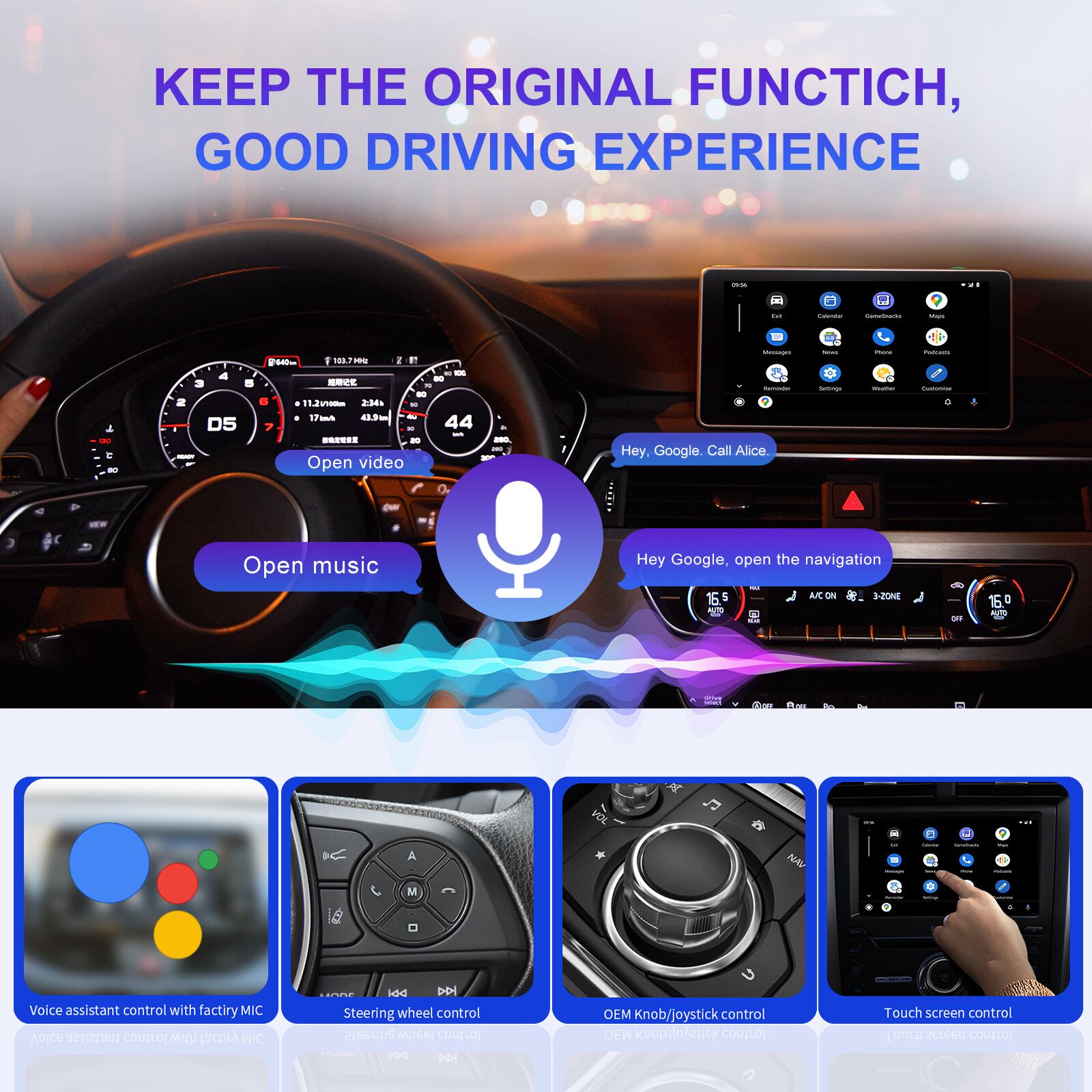 説明:車のワイヤーコントロールパネルを交換する必要はなく、元のワイヤーコントロールインターフェースに直接接続され、シームレスなワイヤレス接続機能を備えています。