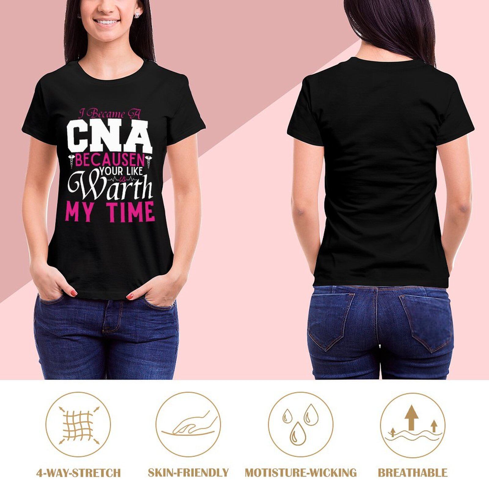 Becausen-カジュアルな半袖Tシャツ,ラウンドネックの女性用プリントTシャツ